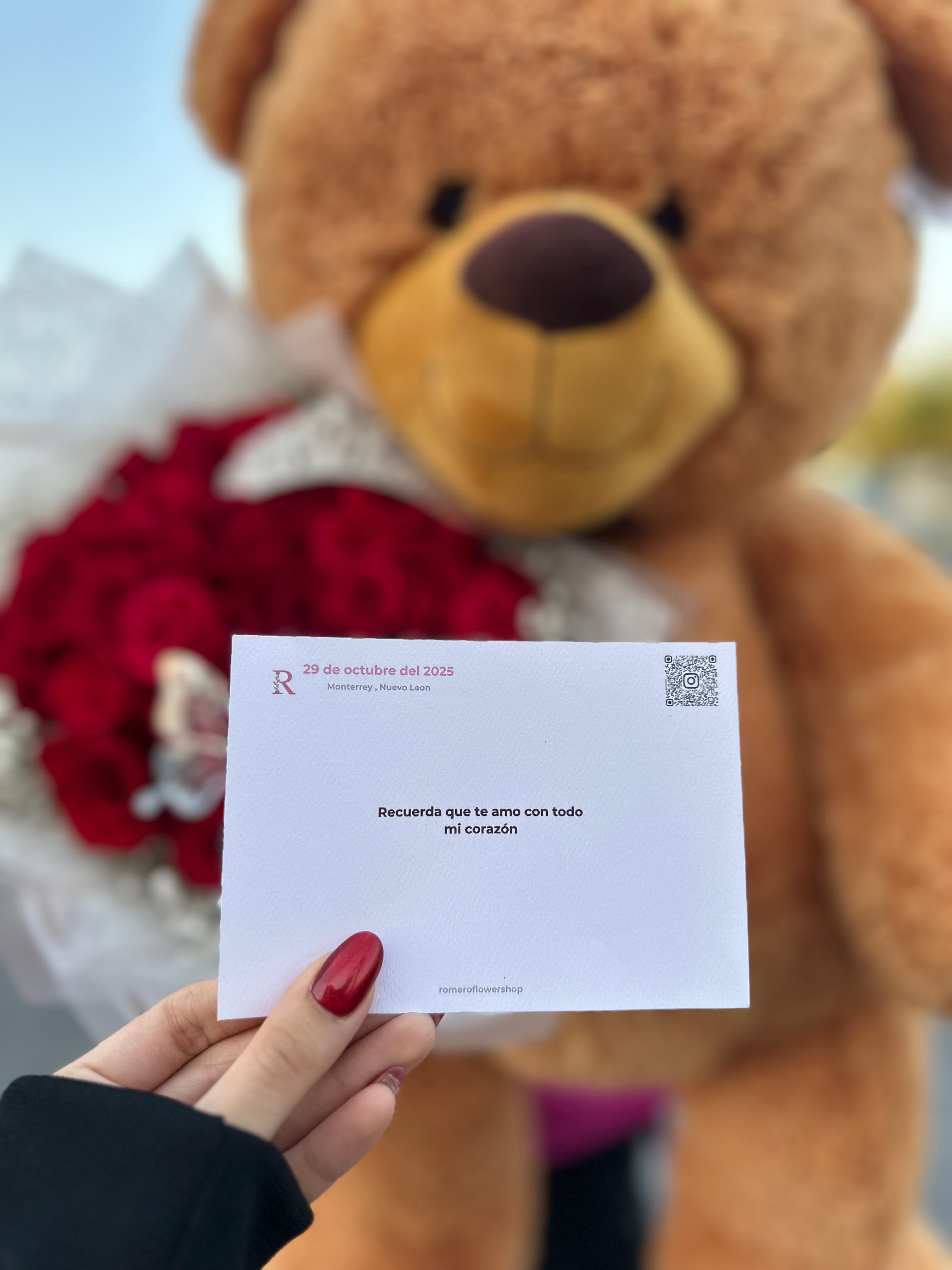 Cada ramo incluye una dedicatoria personalizada, impresa con la mejor presentación y cuidado.