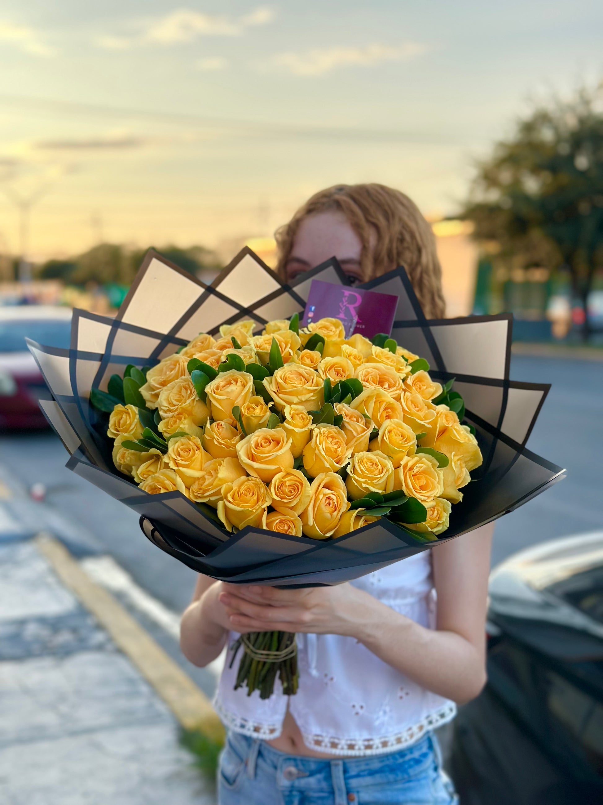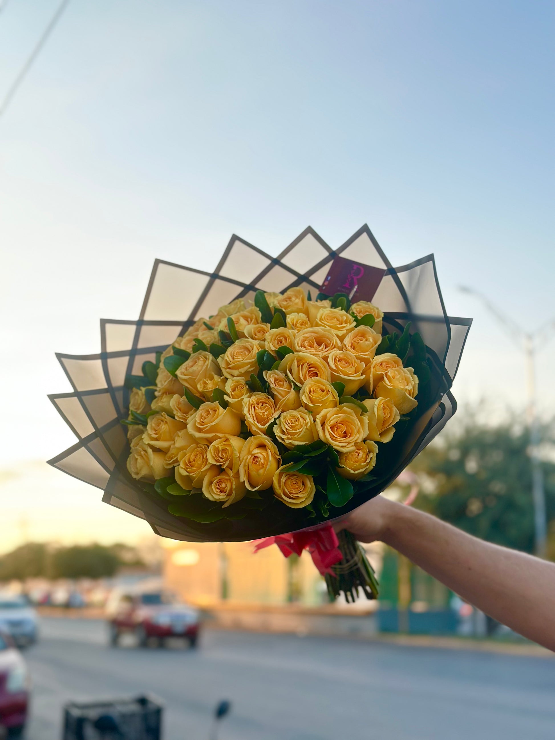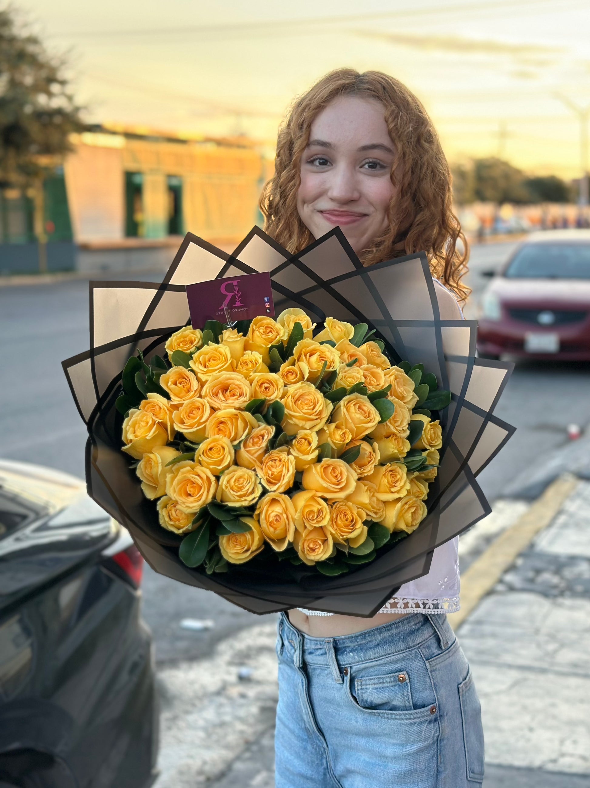 Un ramo imponente con 50 rosas amarillas , pensado para regalar alegría, gratitud y cariño sincero .