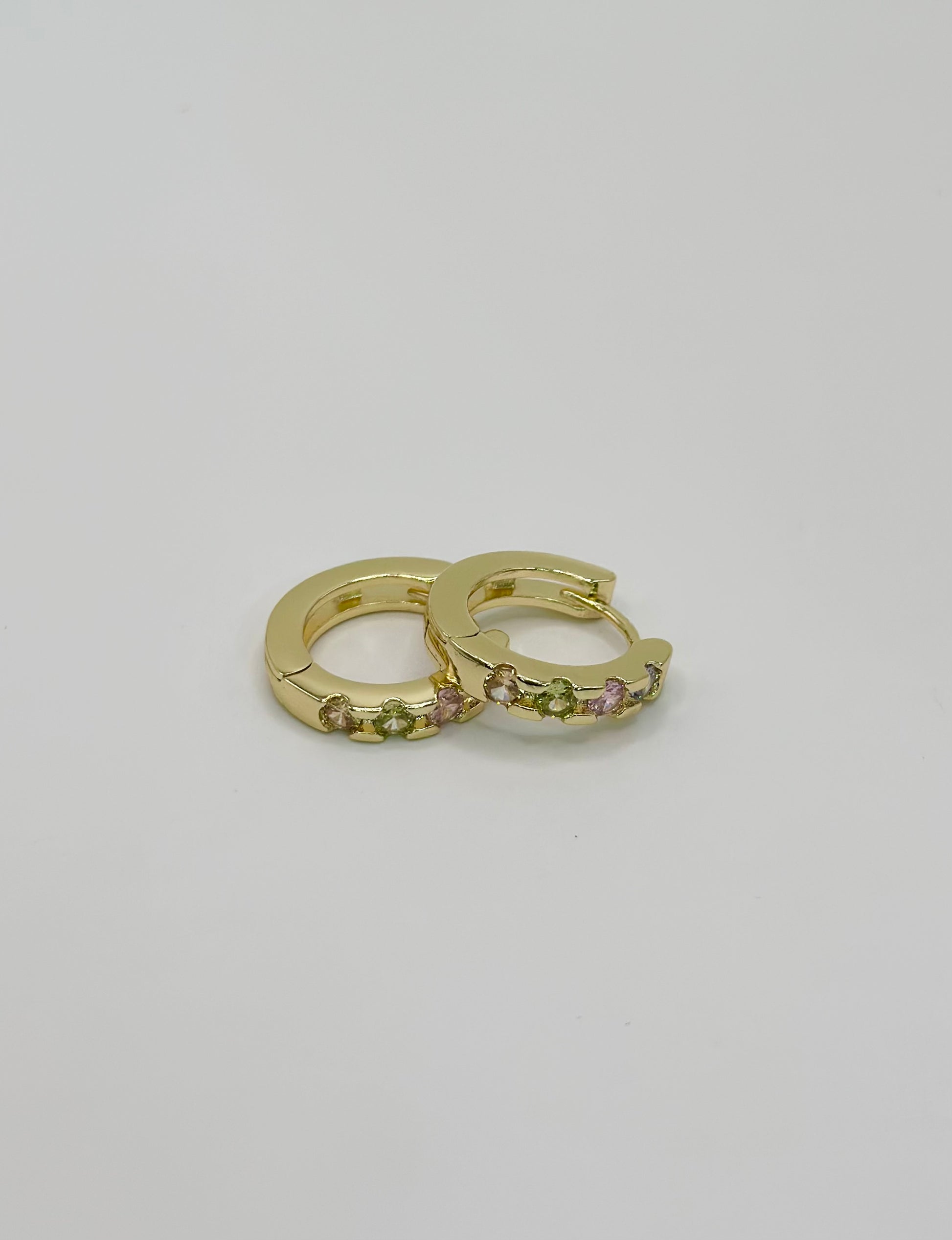 Aretes Aro Dorado con Brillos de Colores – Alegría que Enamora ✨