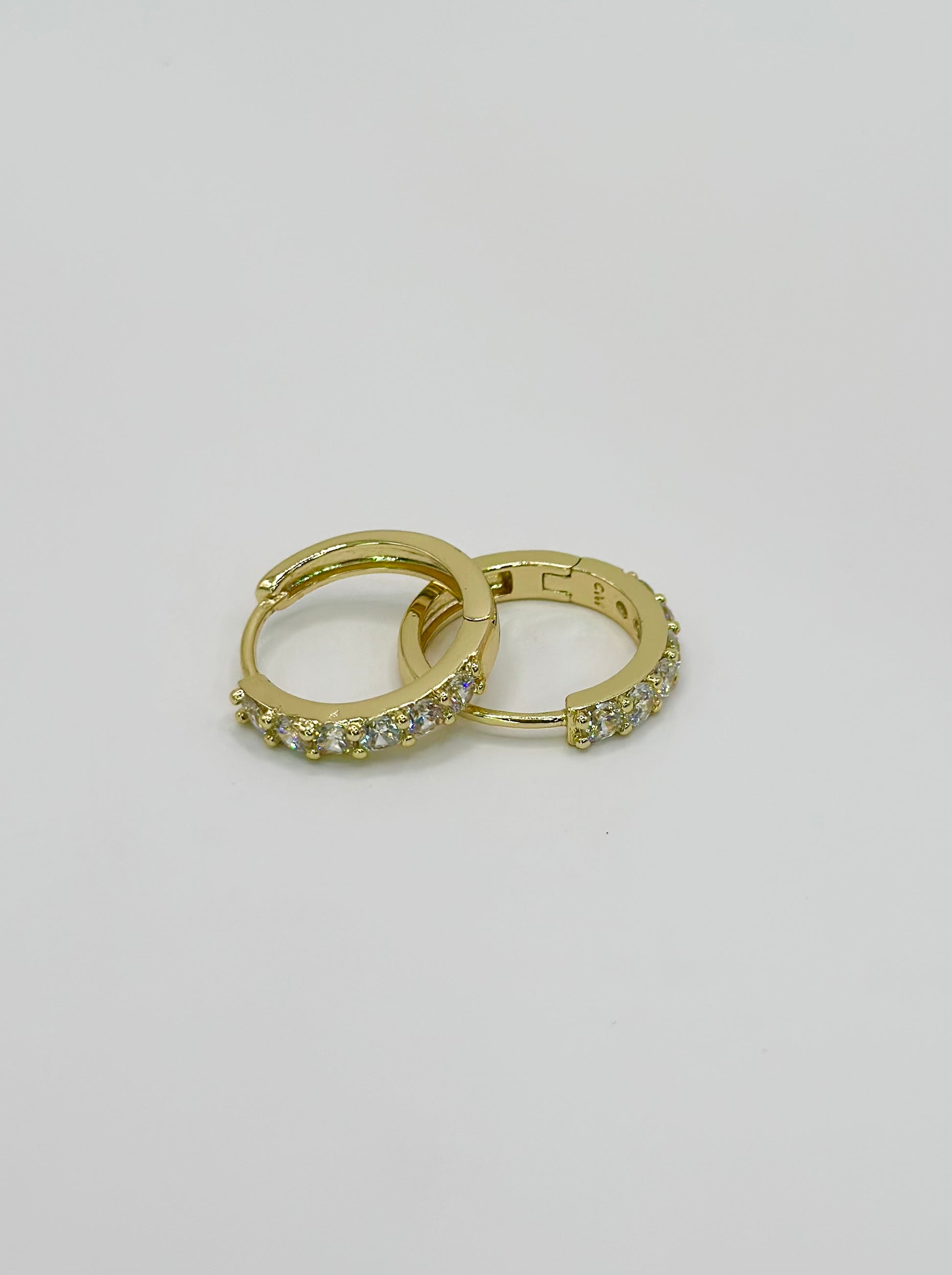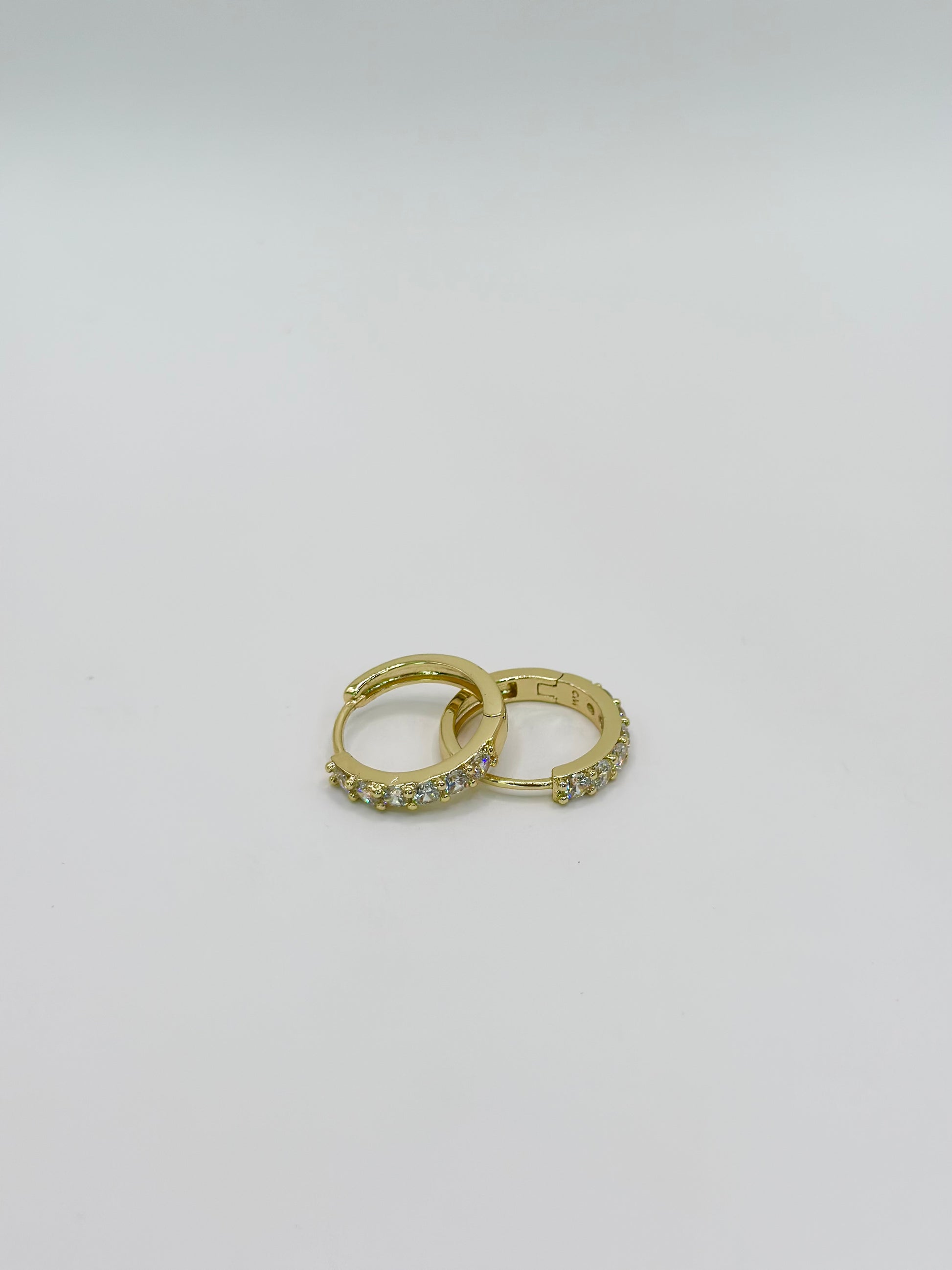 Estos aros dorados con brillos transparentes combinan elegancia y sencillez, el detalle ideal para acompañar tus flores o peluches.