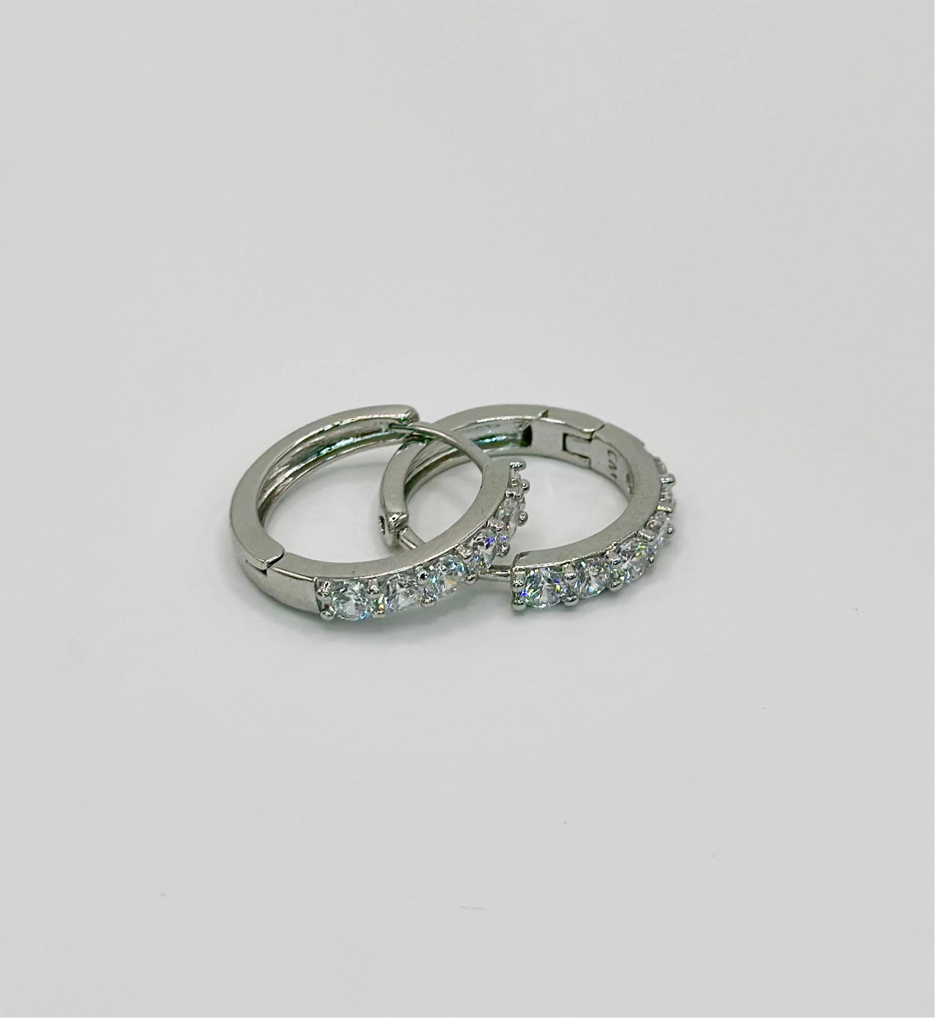 Estos aros plateados en chapa de oro blanco 18k reflejan la luz con un brillo espectacular que realza cualquier look o regalo.