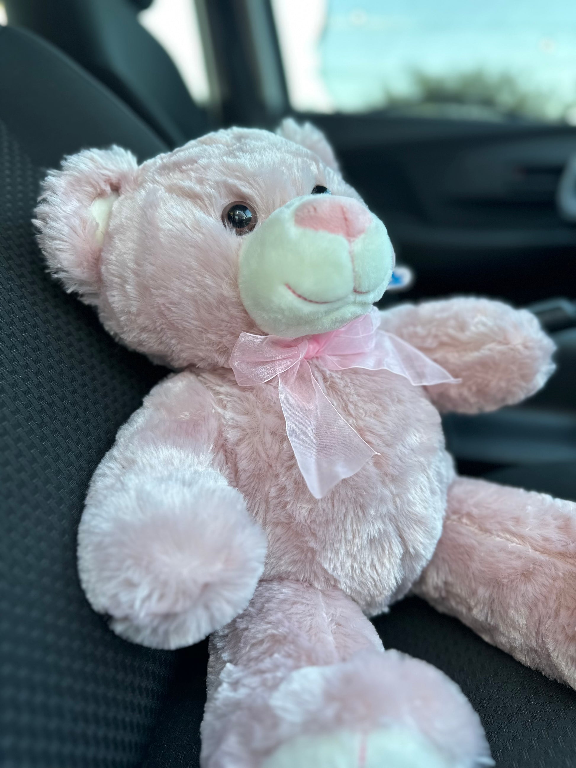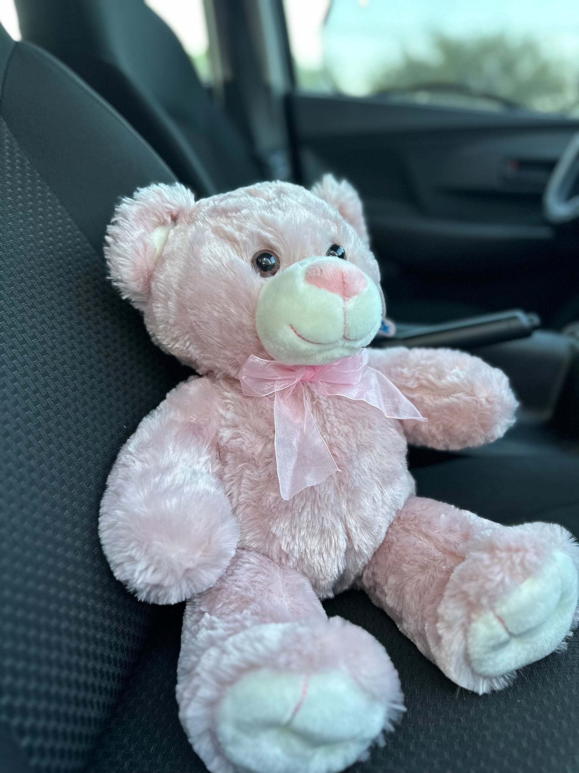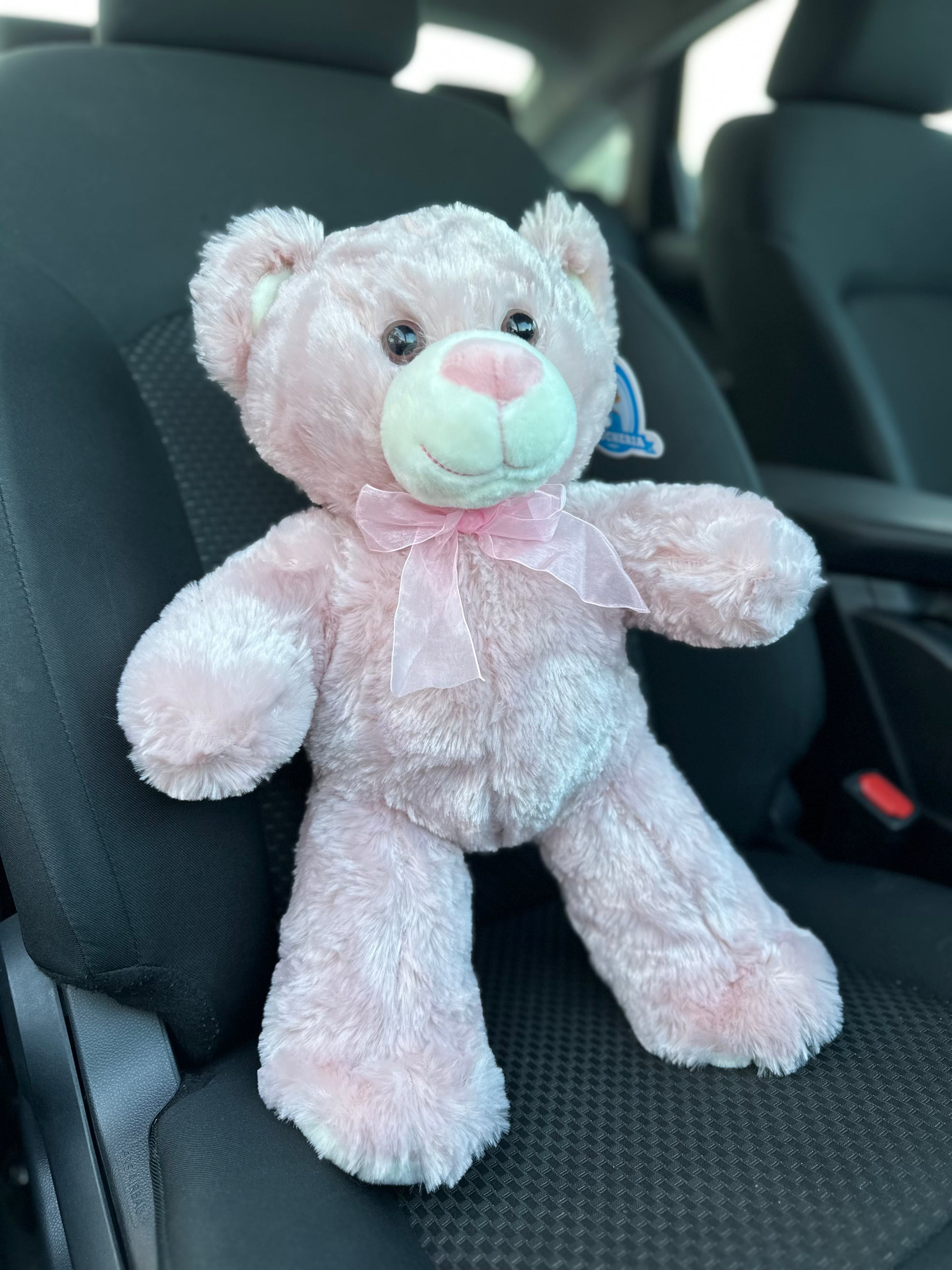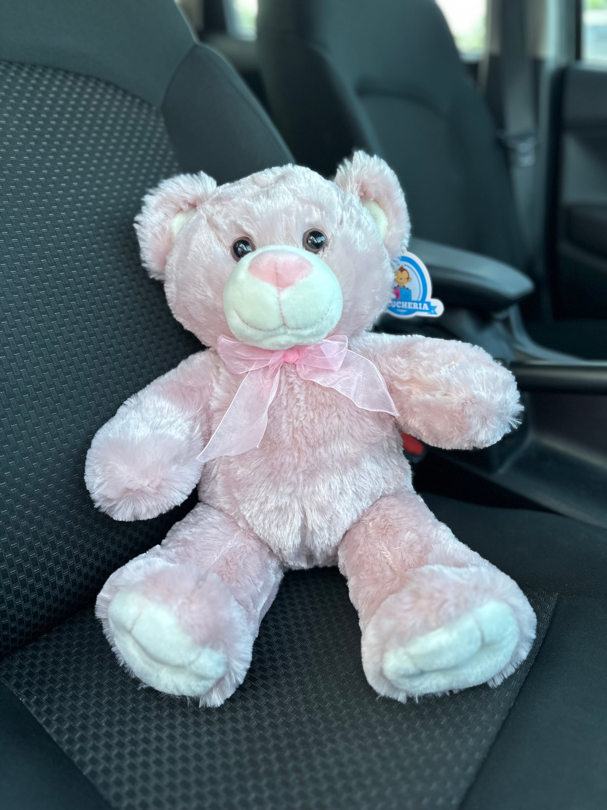 Un peluche premium de 50 cm que combina suavidad y estilo con su elegante moño rosa.