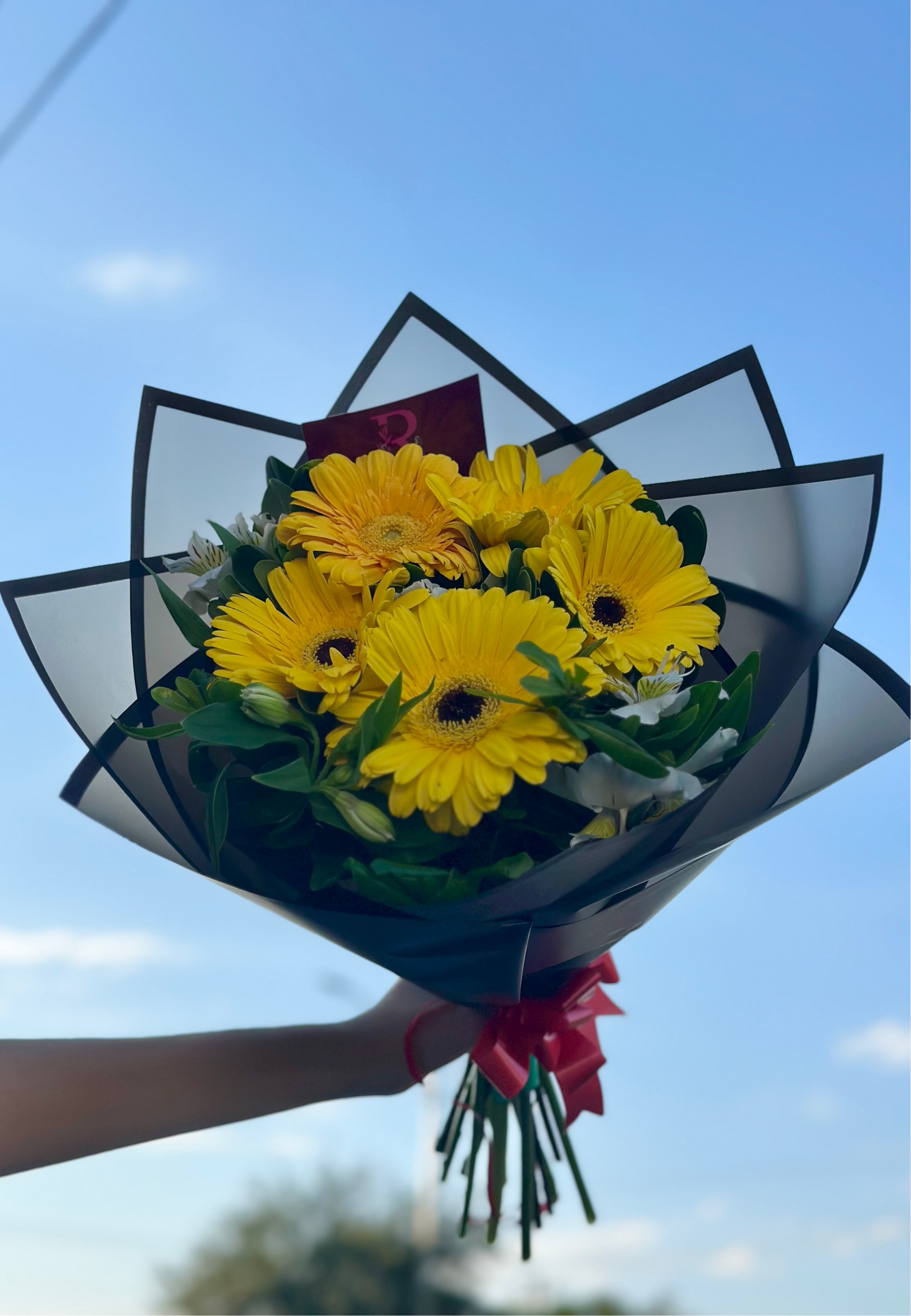 Incluye 5 gerberas amarillas frescas, papel coreano premium y dedicatoria personalizada.