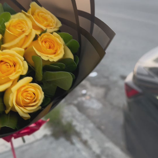 Regala un ramo de 12 rosas amarillas frescas, símbolo de alegría, amistad y cariño sincero.
