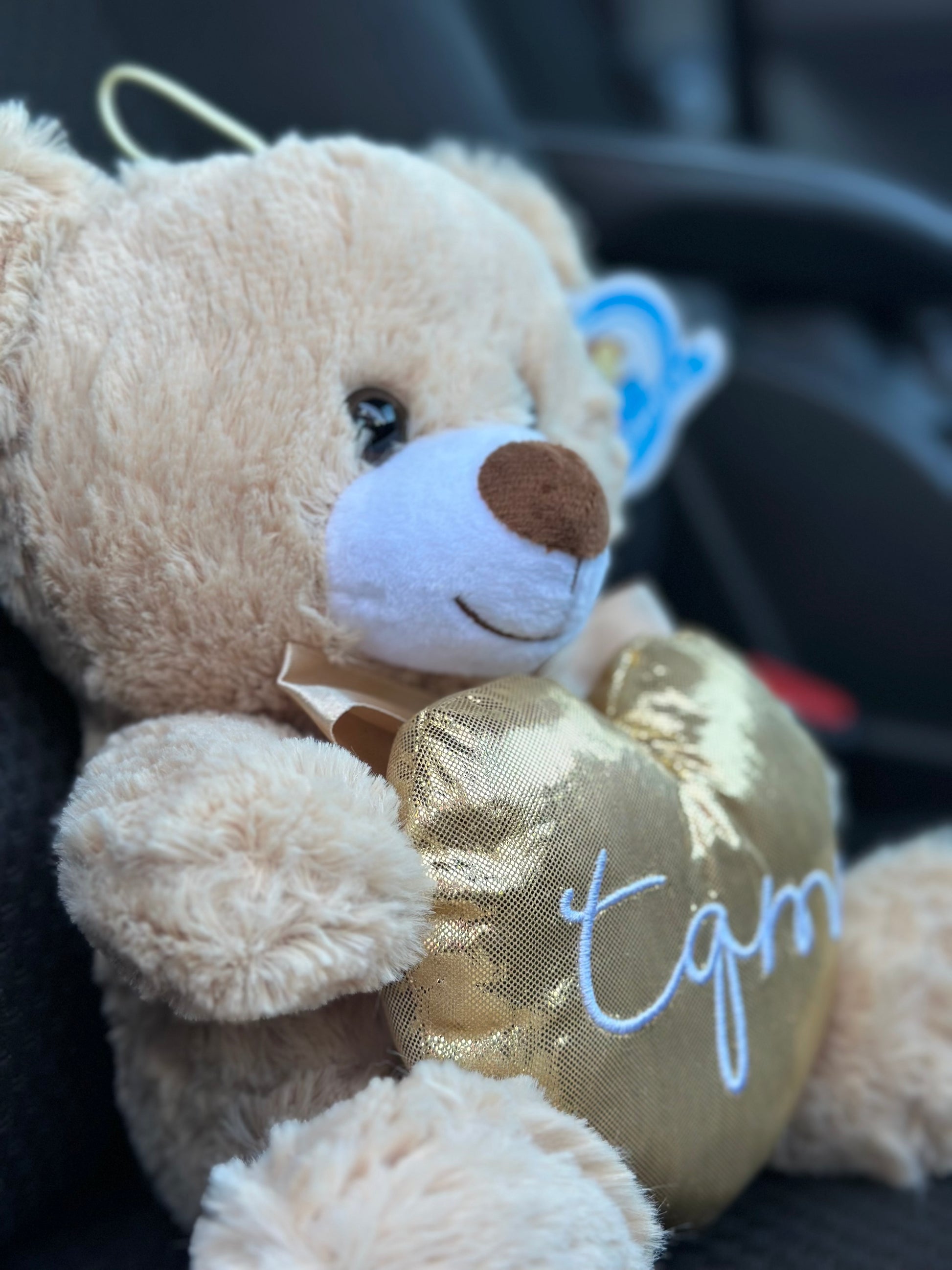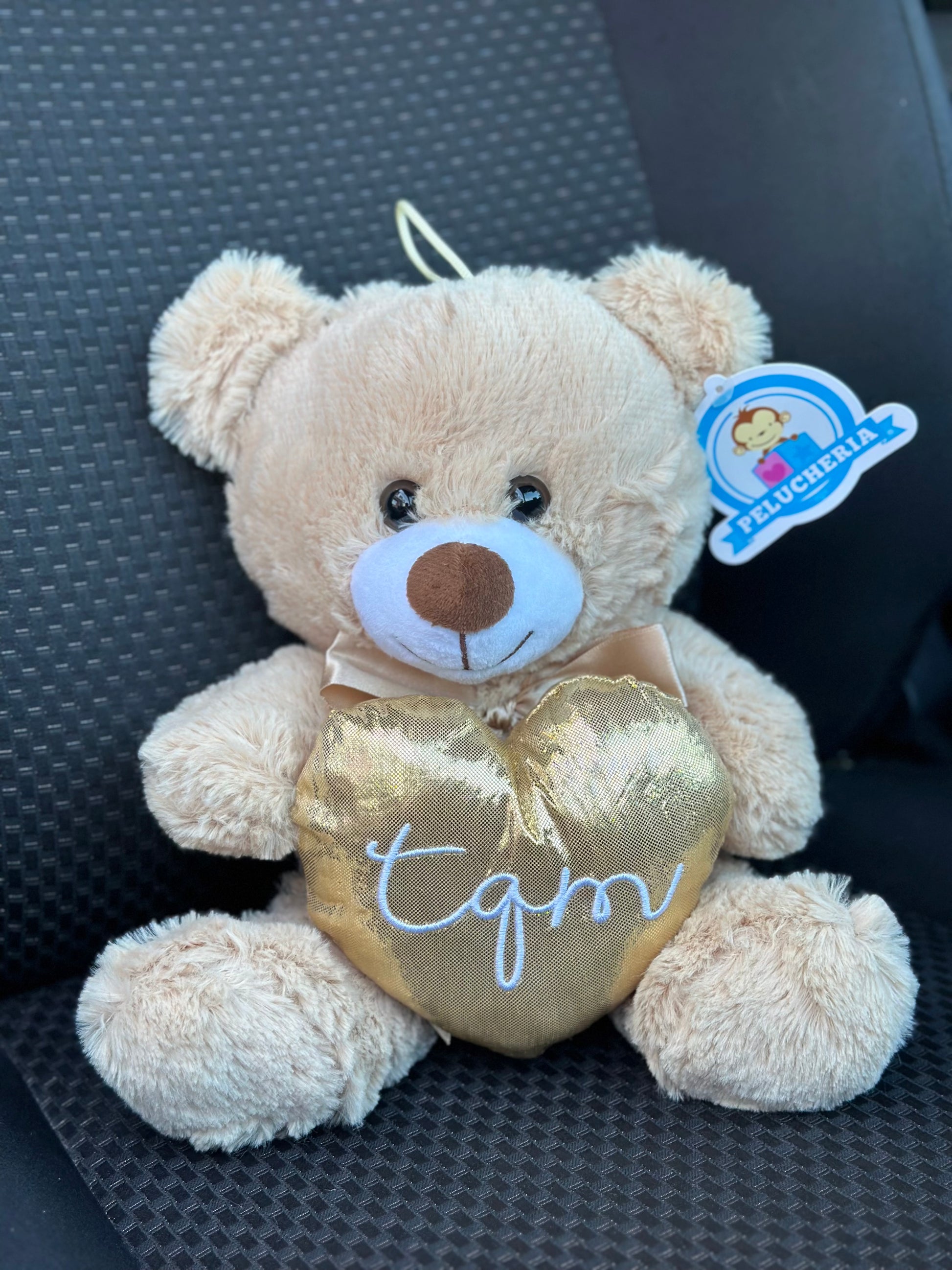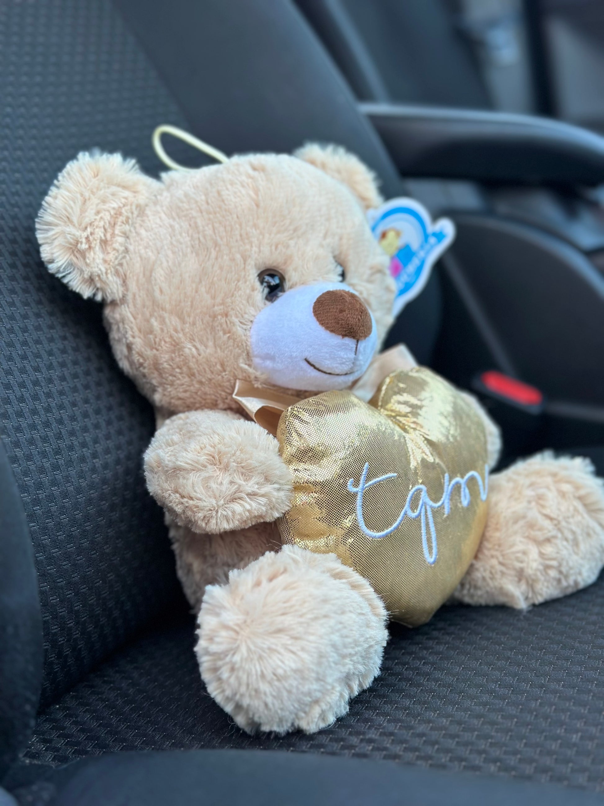 🧸Un oso de peluche con corazón dorado que transmite ternura en cada detalle.